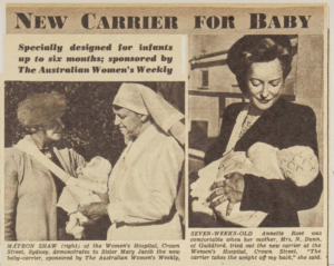 Drugim znanym modelem był Margaret Shaw Carrier, stworzony przez pielęgniarkę Margaret Shaw i promowany przez czasopismo „Australian Women’s Weekly”. Shaw doskonale rozumiała potrzeby matek, które musiały dzielić czas między opiekę nad niemowlęciem a codzienne obowiązki. Jej nosidełko było lekkie, proste i niedrogie, a dodatkowo można je było łatwo zamówić pocztą, co czyniło je dostępnym dla wielu rodzin.