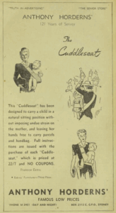 Komercyjnych nosidełek dla dzieci prawie wtedy nie było. Zamiast tego gazety drukowały wzory i instrukcje dla rodziców, którzy chcieli samodzielnie uszyć lub zmontować nosidełko. Popularny projekt przypominał małe krzesełko z płótna i sklejki. Rodzice mogli nosić je jak torbę podróżną, a po złożeniu chować do niewielkiego pokrowca.