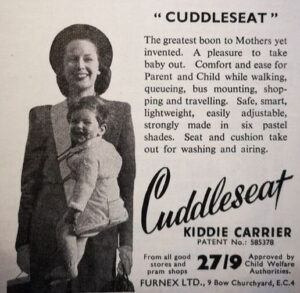 Lata czterdzieste XX wieku były niezwykłym momentem w historii babywearingu. Z powodu wojny, braku wózków i ograniczonych usług dostawczych rodzice musieli znaleźć alternatywy. Z tego okresu narodziło się Cuddle Seat nosidełko, które okazało się nie tylko praktycznym rozwiązaniem, ale też symbolem pomysłowości i troski o dzieci.